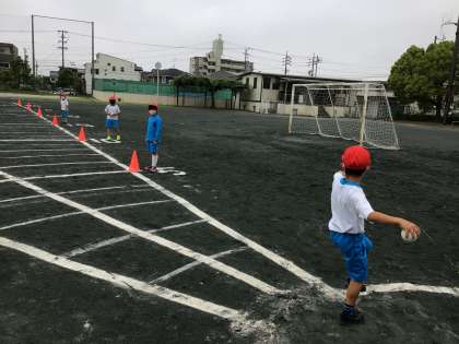 体力テストでソフトボール投げをしました。練習してきたことを思い出しながら、遠くに投げようと力いっぱい投げました。