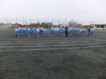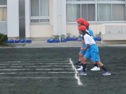 昨日の体力テストは、雨天のために途中で終わってしまいました。そこで、今日は、その続きから行いました。1組と3組が50m走、2組と4組がソフトボール投げを行いました。