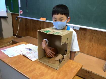 「いろいろなかたち」の学習の様子です。今日は、いろいろな箱の形の違いや特徴について考えました。
