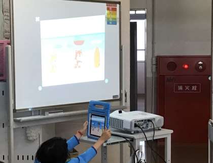 タブレットのアプリで、アニメ動画を作りました。命令アイコンを駆使して作った世界は、どれも素敵でした。子どもたちのアイディアに脱帽!