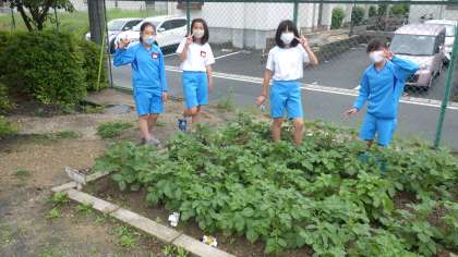 6年生 ジャガイモ畑でハイチーズ!