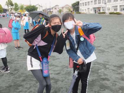 今日は、小雨が降りそうな様子でしたので、傘をさしている子もいました。