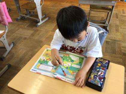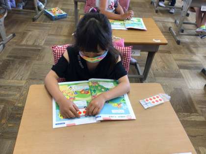 「ふえたり へったり」の学習の様子です。数図ブロックをを操作することで、具体的な数のイメージをもちながら学習をしています。
