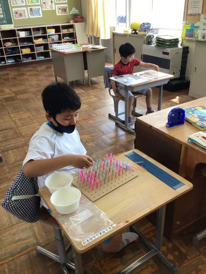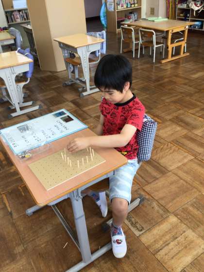 さすようになりました。丸や四角、迷路のような形も作って友達と見せ合っています。