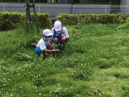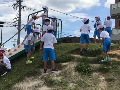 なかよしのみち公園に到着。たくさんの春を見つけました。短い時間でしたが、遊具を使って楽しく過ごしました。