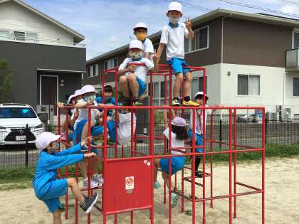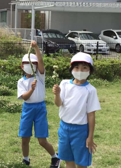 ターザンやジャングルジム、シロツメクサでアクセサリーを作る子もいました。