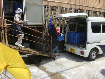 気になっていた「たまご屋さん」に来ました。にわとりはいるのかなと、のぞいています。偶然、たまごを運んでいるところを見ることができました。