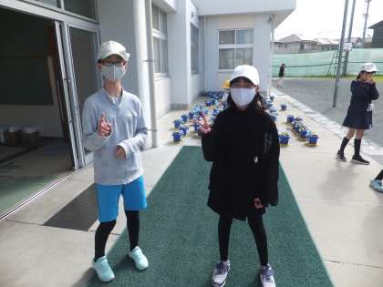 今日の挨拶ボランティアの様子です。6年生が中心となって行っています。