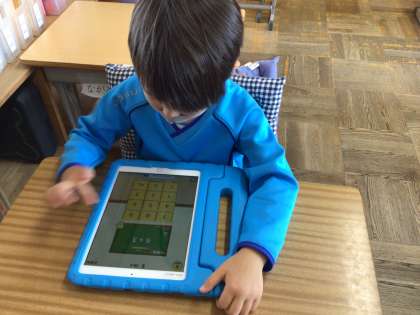 「たしざん」の学習が始まりました。課題が早く終わった子は、iPadのアプリ「ひよこ暗算」で計算力をさらに鍛えていきます。