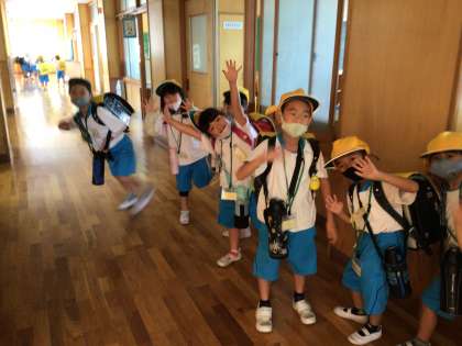 帰りの支度を終えて、準備ばんたんです。もうすぐ帰るよ!