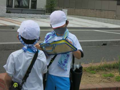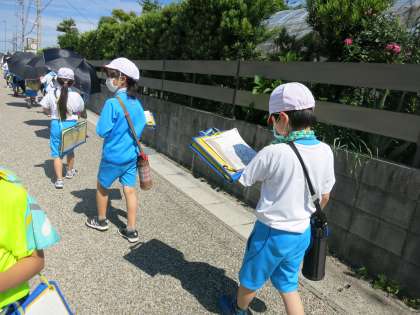 お天気に恵まれて、1回目の校外学習に行ってきました。地図と自分の位置を確認しながら歩き、社会科の勉強で習った地図記号をプリントに記入していました。2回目の校外学習も楽しみです。