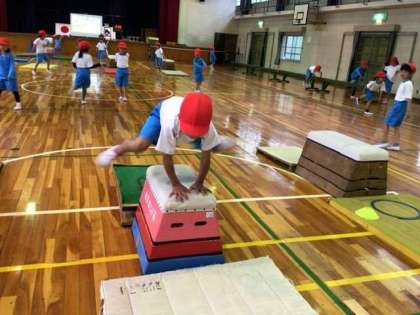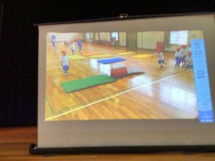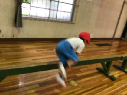 とび箱あそびをしました。たくさんのミッションがあり、楽しみながら体を動かすことができました。とび箱を跳んだあとに、自分が跳んでいる映像の確認をしました。どんなふうに体を動かしたらよいか分かったようです。