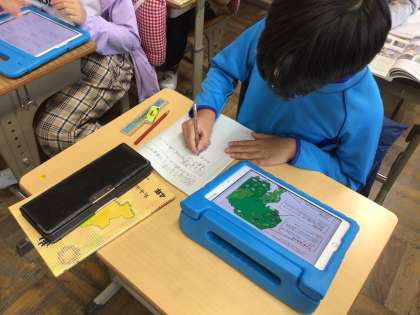 愛知県の主要な農産物について、発表ノートにまとめています。