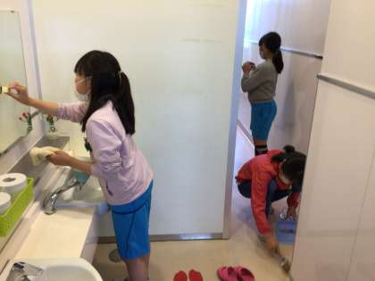 5分間ほどの簡単掃除の日ですが、「ここの掃除するー!」と、自主的に動いてくれる子たち。素敵です。お道具箱も整頓しています。