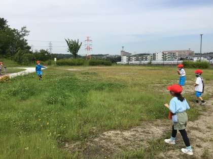 それを見て、「わたしも捕まえたい」とたくさん飛んでいるモンシロチョウを追いかけて走り回っていました。