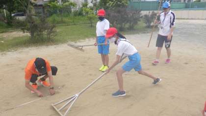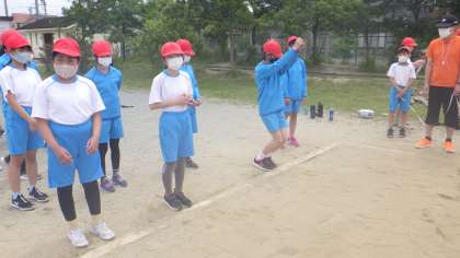 体力測定の種目の「立ち幅跳び」を行いました。どんな記録がでたかな?