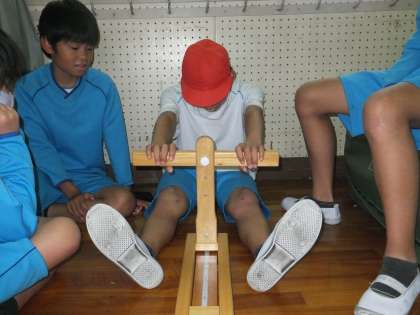 1組の体育の授業です。今日は、20mシャトルラン、長座体前屈、反復横跳びを行いました。