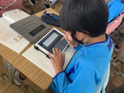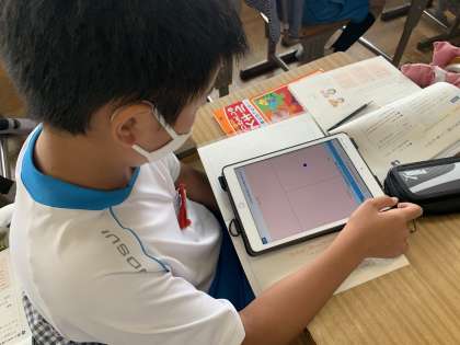iPadのポジショニング機能を使って、学級の友達と、質問に対する考えを共有しました。