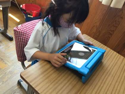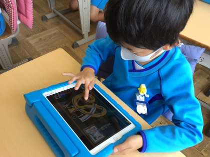 課題が早く終わった子は、iPad「にほんごーひらがな」のアプリでひらがなを学習しています。自分の学習したいひらがなを選択して学習しています。