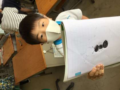 「こん虫の体のつくり」の導入で、よく知っているはずのアリの絵を描きました。みんな、正確に描けたかな?
