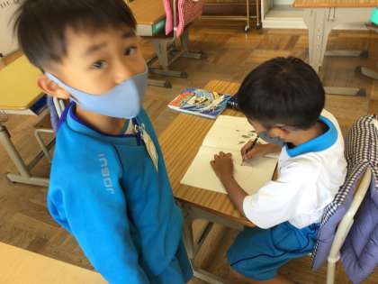 自分の好きなことをしてすごしています。黒板を進んで消してくれている子もいます。