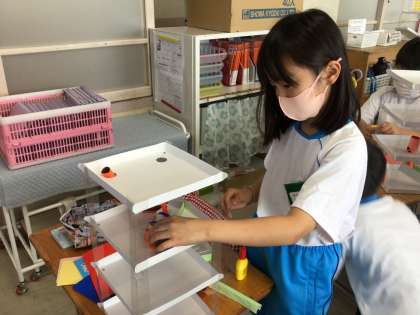 「こうしたい」という思いに合わせて、別の材料を家から持って来てもよいと伝えてあります。ご協力お願いします。
