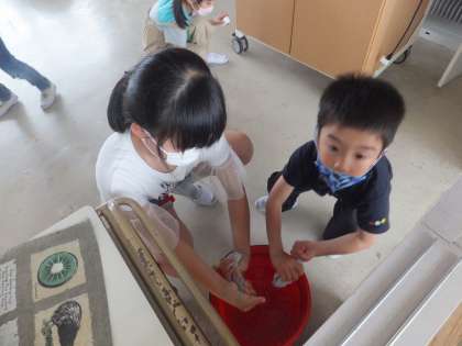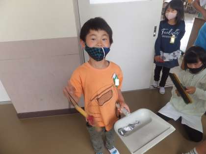 6年生は、1年生の教室に行き、1年生と一緒に掃除をしています。