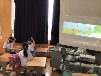 例年、小学1年生を対象に実施していましたが、昨年度より新型コロナウイルス感染症の影響で学校での映像学習及び、豊田市交通安全センターでの親子講習のみとなっています。そこで今日は、DVDを見ながら、横断歩道の渡り方など、交通安全について学びました。