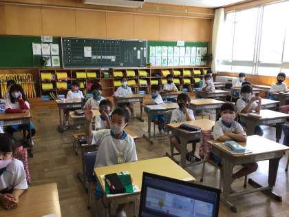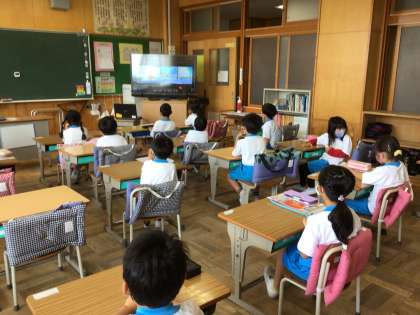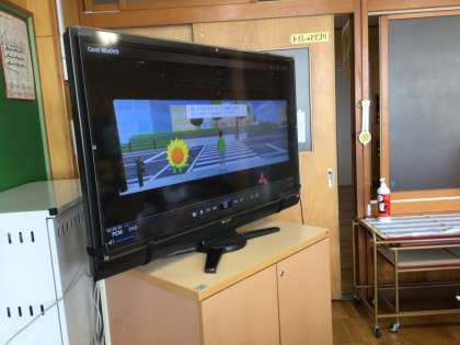 交通公園での学習が難しいため、DVDで学びました。どの子も真剣に見入っていました。