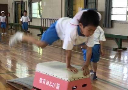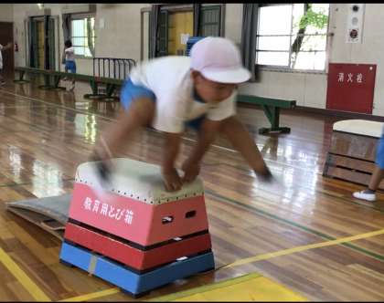 「とびばこあそび」の学習の様子です。全員開脚とび達成を目指してコツを意識して運動しています。目標達成まであと3人です!