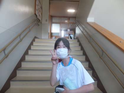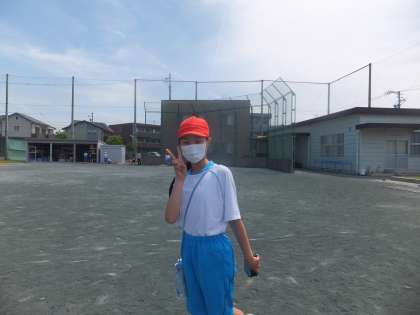 砂場から、教室に戻る途中です。教室に入る前にしっかりと手洗いを行います。