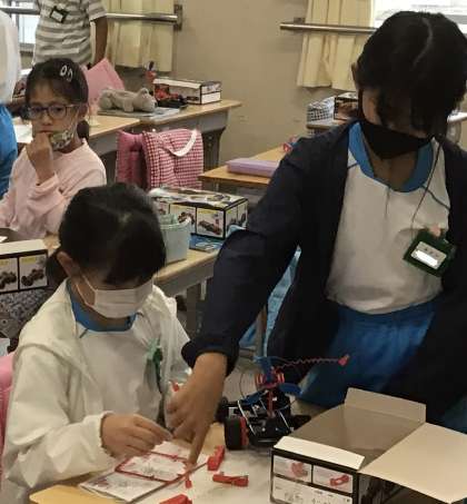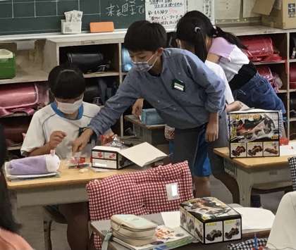班ごとに実験に取り組み、早く結果を出すことができた班の子たちが、ミニ先生となって他の班の子にアドバイスをしていました。