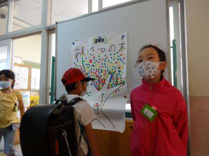今日は廊下であいさつの木の横に立ち、進んでみんなにあいさつをする子もいました。