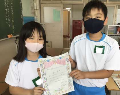 昨日、給食委員さんが「給食の準備の時間から静かにしましょう週間」の表彰をしてくれました。この活動をきっかけにして、これからも望ましい給食時間にできるように協力していきましょう。