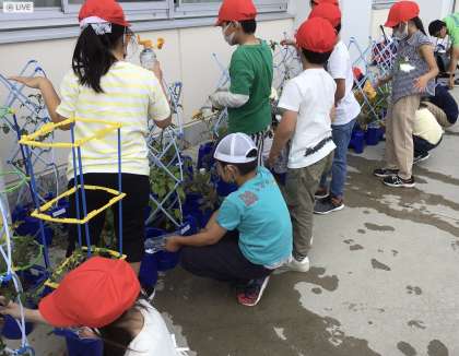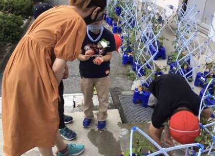 「先生、トマトが赤くなったよ。」「ピーマンができたよ。」