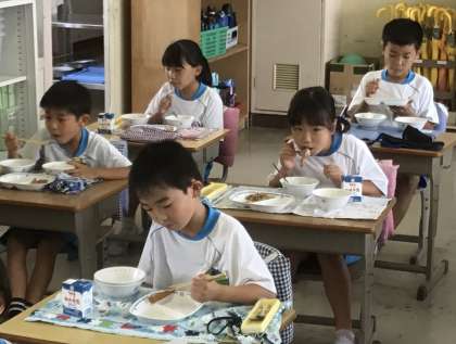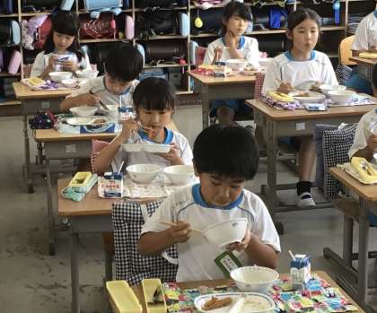 地産地食についての話を聞き、豊田市産や愛知県産の食べ物を