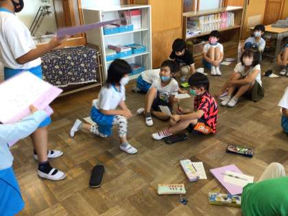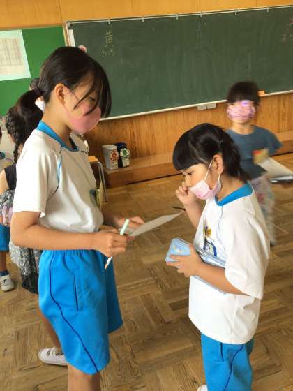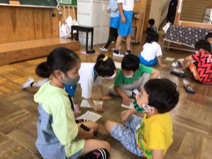 初めてのわくわく活動を行いました。始まるまでは緊張した様子でしたが、6年生のお兄さん、お姉さんが優しく声をかけてくれて、すぐに笑顔になりました。次回の活動が今から楽しみです。