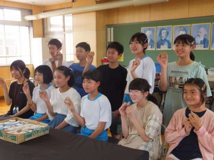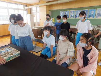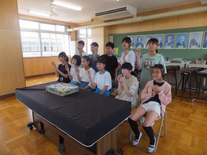 昔遊びクラブの卒業アルバム用写真撮影の様子です・
