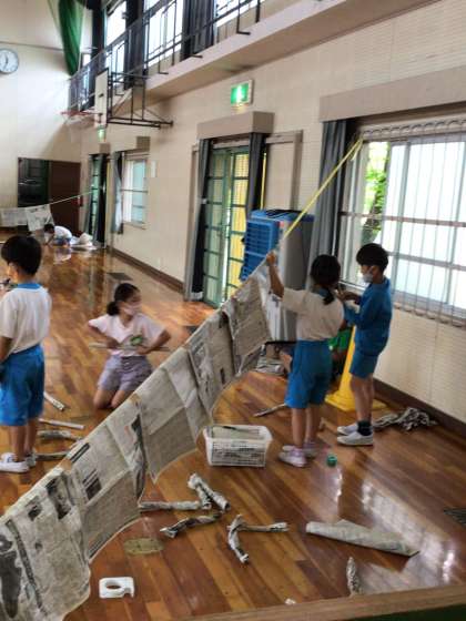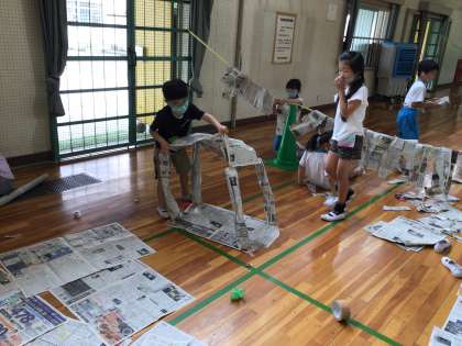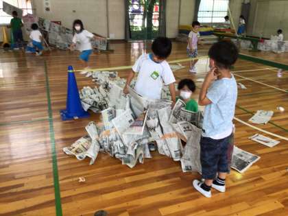 新聞紙をたくさん使って「新聞紙王国」を作りました。