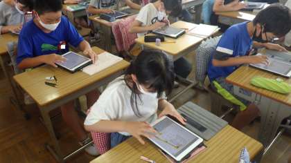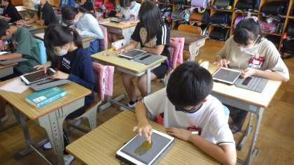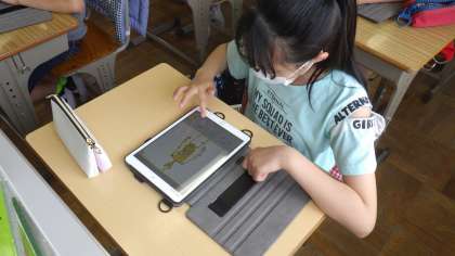 テストの後の時間を使い、iPadで「人体パズル」を行いました。