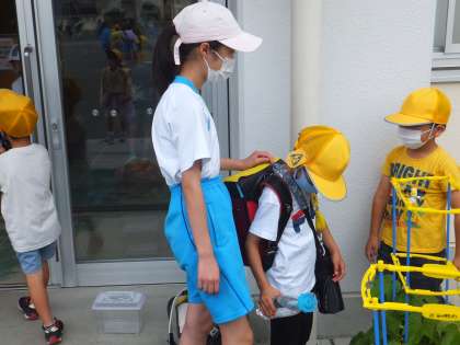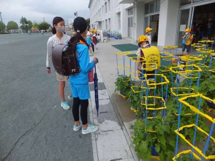 本日の朝の様子です。水やりをしている1年生に声をかけたり、笑顔で登校したりしています。