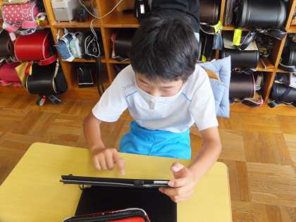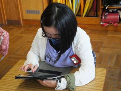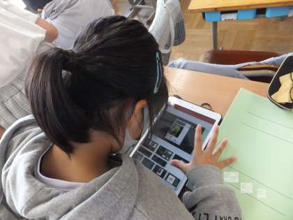 今日の総合的な学習は、学習用タブレットを使いました。浄水地区調べのプレゼンテーションで使う資料を作りました。各班でパワーポイントを使ってまとめました。