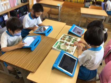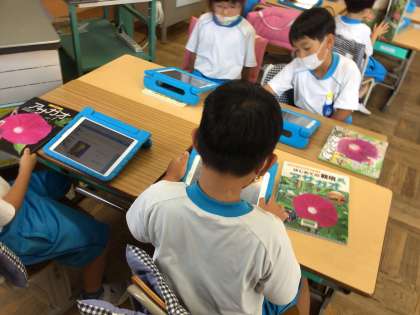 あさがおの「お悩み相談会」を開きました。班の友達と自分のあさがおのお悩みを共有したり、解決法を自ら進んで調べ出す子もいました。