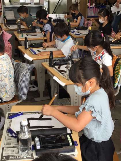 これまでに習った横、たて、折れを使って「日」を練習しています。