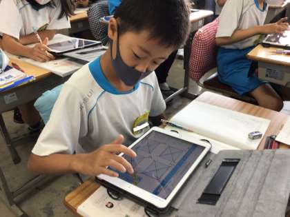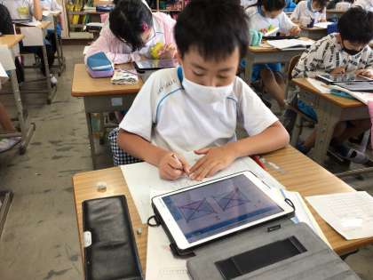 iPadで一つ一つ確認しながら合同な三角形を探しています!