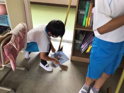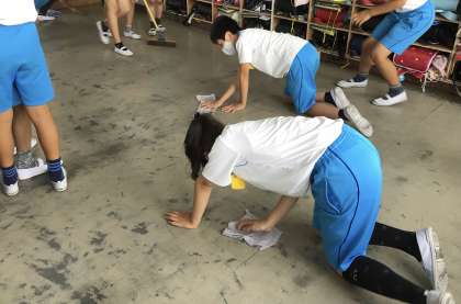雑巾がけが大変だけど、膝をついてカクカク拭きを頑張っています!