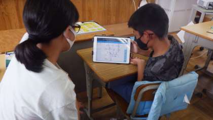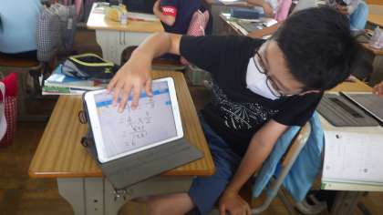 分数÷分数の計算をipadで行った後、友達に見せながら計算の仕方を説明しました。