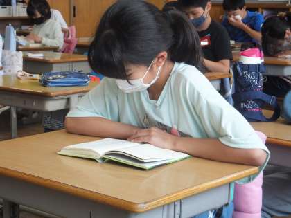 給食を食べ終わった子は、静かに過ごします。読書をしている子が多いです。今週、来週は図書委員会で読書週間を企画して取り組んでいます。