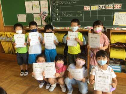 校長先生に、かがやき賞をいただきました。初めての賞状で、とっても喜んでいました。