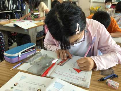 コンパスや分度器を上手に使ってかいています!